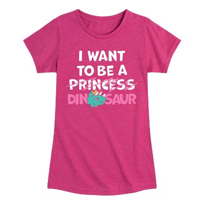 Girls' - Instant Message - I Want To Be A Dinosaur -Not Princess Fitted Short Sleeve Graphic T-Shirt