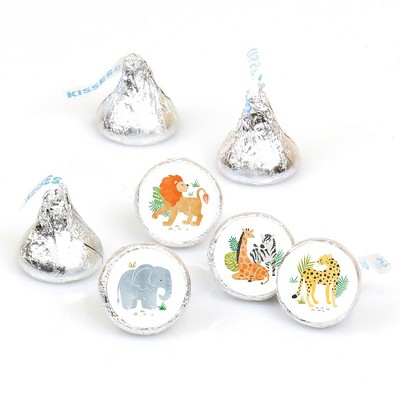 Big Dot of Happiness Mini Safari Animals Party Stickers, Jungle Birthday Party or Baby Shower Round Candy Favors - Small Labels (1 Sheet of 108)