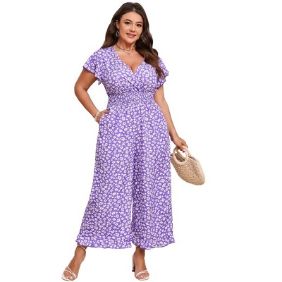 BLUEMING Plus Size Loose Jumpsuits for Women Short Ruffle Sleeve One Piece Outfit High Waist Jumpsuits