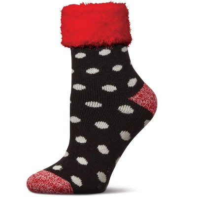 Memoi Women's Polka Dot Plush Cabin Sock Black 9-11