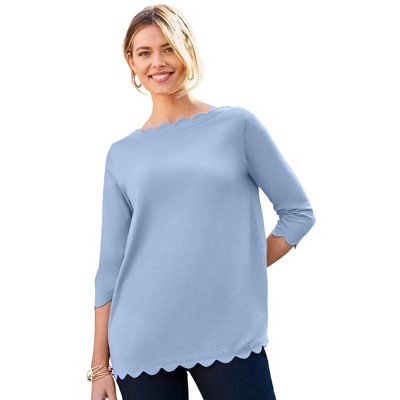 Woman Within Perfect Printed Short-Sleeve Boatneck Tunic