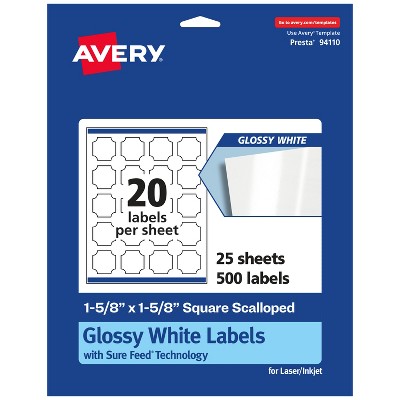 Avery Glossy White Square Scalloped Labels with Sure Feed, 1-5/8" x 1-5/8"