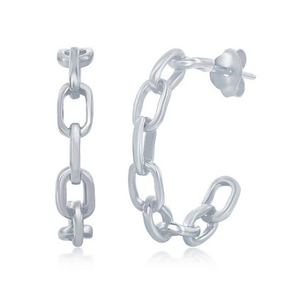Bella Silver Sterling Silver 21mm Paperclip Hoop Earrings - Silver