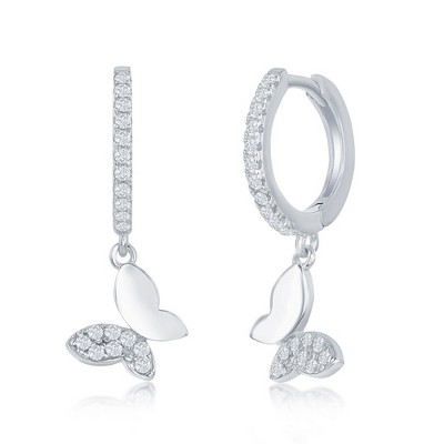 Bella Silver Sterling Silver Small Huggie Hoop CZ Butterfly Earrings - Silver