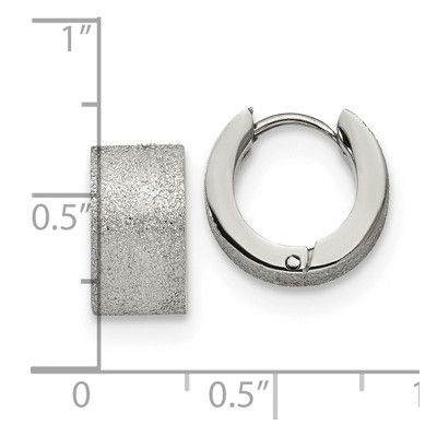 Chisel Stainless Steel Polished and Sandblasted 7mm Hinged Hoop Earrings