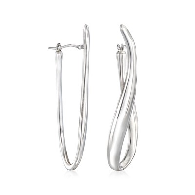 Black Bow Jewelry 2mm Twisted Oval Hoop Earrings in 14k White Gold, 30mm (1 3/16 Inch)
