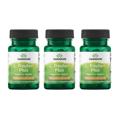 Swanson L. Reuteri Plus with probiotics & FOS for gut health (7 Billion CFU, 30 veggie capsules, 4 pack)
