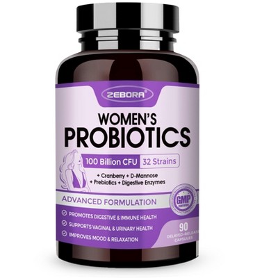 NATURE TARGET Women's Probiotic 2-Packs 100B CFUs, digestive enzymes, prebiotics, cranberry. Supports gut, vaginal & urinary health. 180 veggie caps