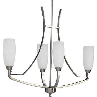 Progress Lighting Gather 5-Light Chandelier, Brushed Nickel, White Etched Glass Shade
