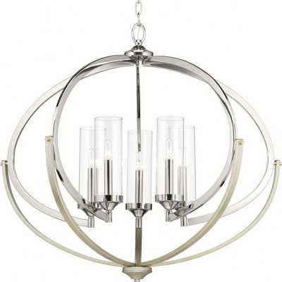 Progress Lighting Evoke 5-Light Chandelier, Steel, Polished Nickel, No Shade