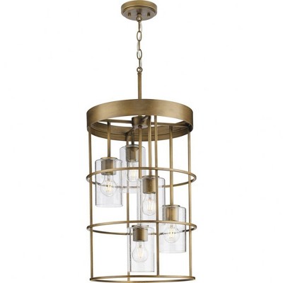 Progress Lighting Hillcrest 4-Light Foyer Light, Vintage Brass, Clear Beveled Glass Panels, Steel Material