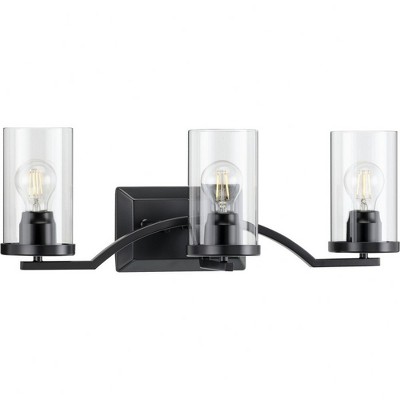 Progress Lighting Lassiter 3-Light Wall Light, Matte Black, Clear Glass Shades