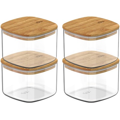 OU Airtight Food Storage Container Set 8pc (set of 4) Clear Plastic Storage Container with Leak Proof Bamboo Lid, Stackable Kitchen Pantry Organizer