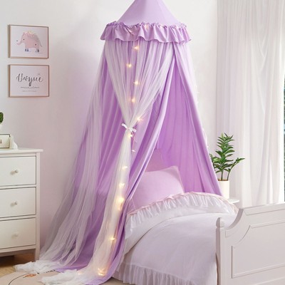 YEERSWAG Premium Double Layer Princess Bed Canopy Bed Curtain Nets with Luminous Stars Lights For Twin Size