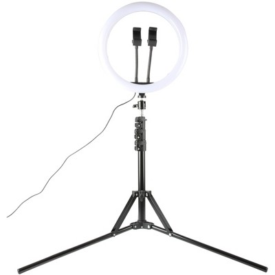 Vivitar 12" Professional White LED Ring Light Kit with Mini Lavalier Microphone, Dual Gooseneck Phone Mounts 63" Light Stand