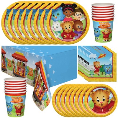 Treasures Gifted Daniel Tiger Birthday Party Supplies - Tableware Deluxe Set for 16 Guests - Plates, Cups, Tablecloth & Napkins