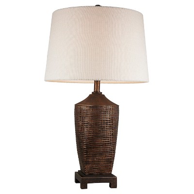 30" Traditional Polyresin Table Lamp, Textured Wicker Design, Beige Linen Shade Includes CFL Light Bulb - Ore International