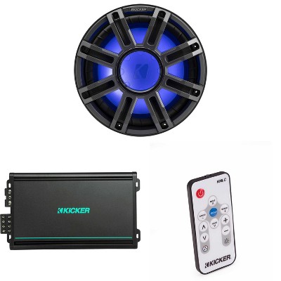 Kicker Marine KPX500.1 Powersports Amp & 10" Free Air 2 Ohm ( Charcoal Grill ) Subwoofer Audio Upgrade, Includes LED Remote