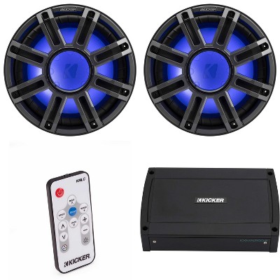 Kicker Marine KPX500.1 Powersports Amp & (2) 10" 4 Ohm Premium Marine Subwoofer (Charcoal Grill )