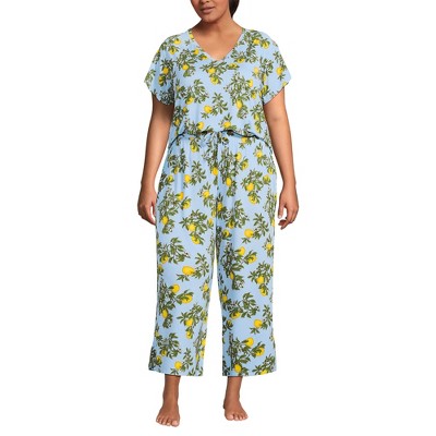 Lands' End Women's Cooling Pajama Set - Short Sleeve Top and Crop Pants