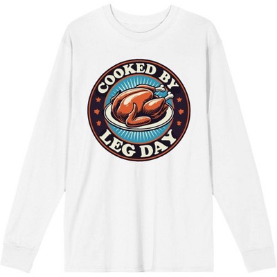 Thanksgiving Cooked by Leg Day Adult Crew Neck Long Sleeve Tee