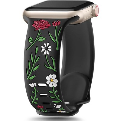 HTUTWOO Floral Band Compatible with Apple Watch Bands 38/40/41/42mm, Flower Engraved Silicone Inlay Dressy Strap for iWatch Series Ultra