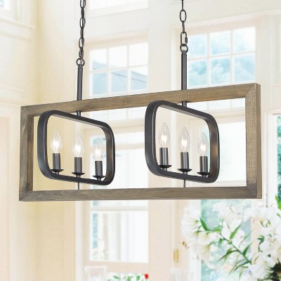 DORESshop 5-Light Matte Black Farmhouse Kitchen Island Lighting, Modern Rectangular Chandeliers for Dining room Foyer