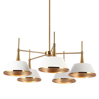 LNC Capensis Matte Black and Polished Gold Shaded LED Dry Rated Chandelier