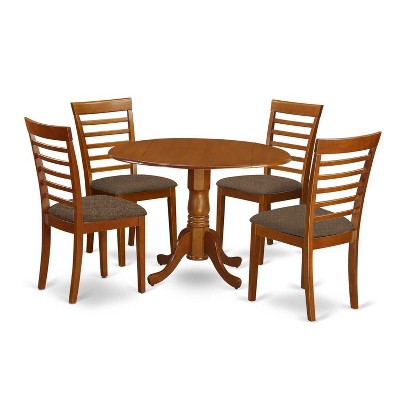 HomeStock 5-Piece Round Mahogany Finish Solid Wood Top Dining table with 4-Chairs