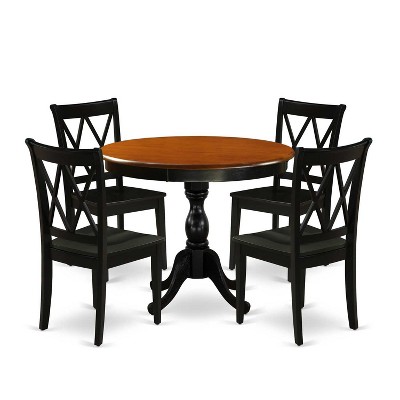 HomeStock 5-Piece Round Black and Cherry Finish Solid Wood Top Dining table with 4 Chairs