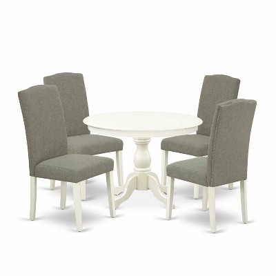 5-Piece Linen White Finish Solid Wood Top Dining table with 4 Chairs with
