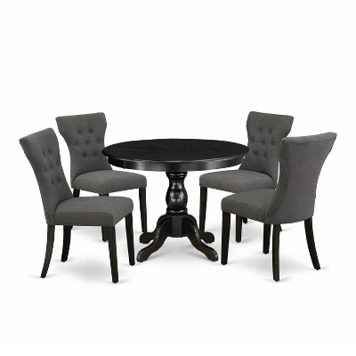 HomeStock 5-Piece Wire Brushed Black Finish Solid Wood Top Dining table with 4 Chairs