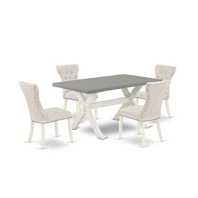 HomeStock 5-Piece Rectangle Wire Brushed Linen White Finish Solid Wood Top Dining Table with 4 Parson Chair