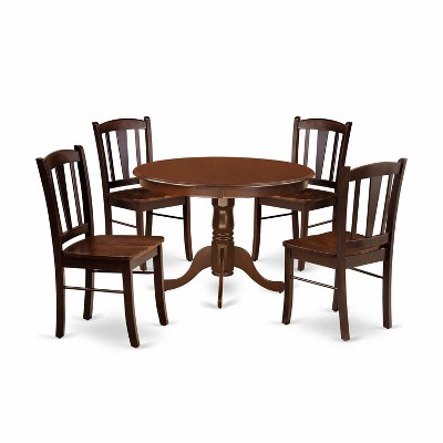 HomeStock 5-Piece Round Mahogany Finish Solid Wood Top Dining table with 4 Chairs