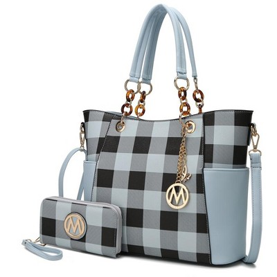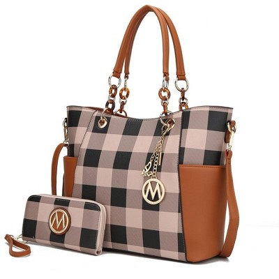 MKF Collection Bonita Checker Tote & Wallet Set Stylish Vegan Leather Bag by Mia K