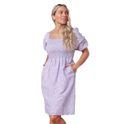 Hope & Henry Womens' Bubble Sleeve Smocked Bodice Dress