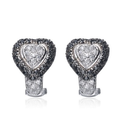 Guili Sterling Silver Halloween Heart Earrings with Black and Clear Cubic Zirconia, Sparkling Playful Jewelry for Costume Parties and Halloween Looks