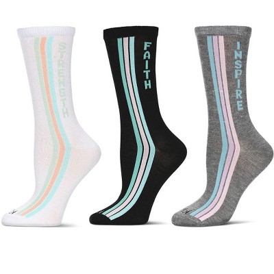 MeMoi Women's 3 Pair Pack Motivational Crew Socks
