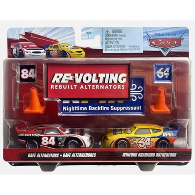 Disney Pixar Cars Fan-Favorite Die-Cast Vehicle 2-Pack Featuring Dave Alternators and Winford Bradford Rutherford with Race Flags and Signs