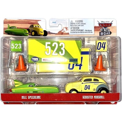 Disney Pixar Cars Fan-Favorite Die-Cast Vehicle 2-Pack Featuring Nile Speedcone and Gearsten Marshall with Race Flags and Roadside Accessories