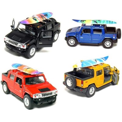 KiNSMART 2005 Hummer H2 SUT with Surf Board 5inch 1:40Scale Die Cast Metal Model Toy Cars SetOf4