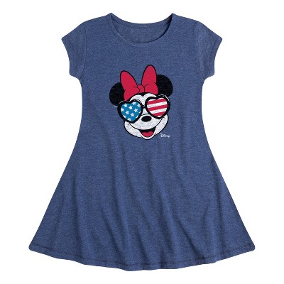 Girls' - Disney - Minnie Flag Glasses Fit & Flair Cap Sleeve Graphic Dress