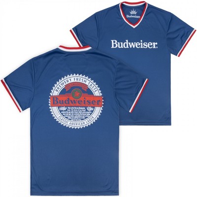 Mens Budweiser Brewery Stamp Front and Back Contrast V-Neck Jersey
