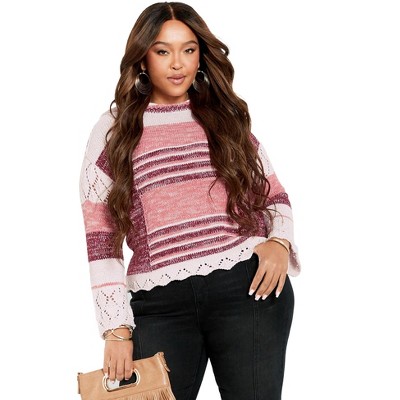 Roaman's Plus Size Crochet Sweater With Starburst Pattern
