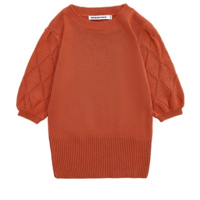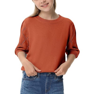 Girls Pullover Knit Sweaters Puff Short Sleeve Kids Crewneck Cute Summer Blouse Sweater Tops