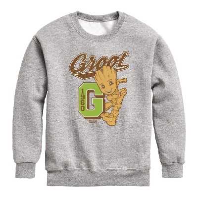 Boys' - Guardians Of The Galaxy - Groot Collegiate Graphic Long Sleeve Fleece Sweatshirt