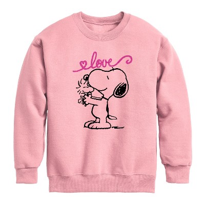 Boys' - Peanuts - Snoopy and Woodstock Love Graphic Long Sleeve Fleece Sweatshirt