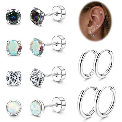 Surgical Steel Earring Set: 20G Hypoallergenic Opal & CZ Studs with Hoops for Sensitive Ears