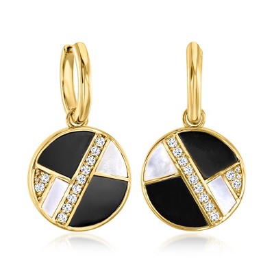 Ross-Simons 18kt Gold Over Sterling Hoop Earrings With Removable Onyx, Mother-Of-Pearl and .90 ct. t.w. White Topaz Drops