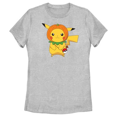 Juniors Womens Pokemon Halloween Pikachu Candy Pumpkin Bag Crop T-Shirt